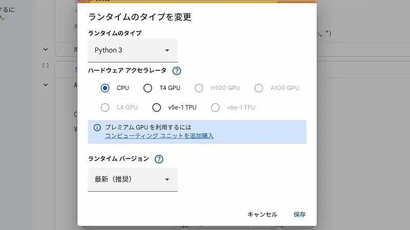 1. ランタイムの変更(GPU/TPU)