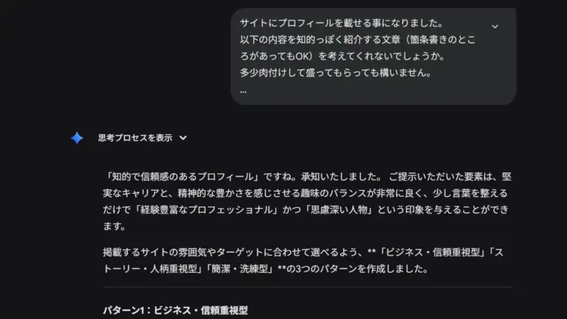 AIは3パターンの紹介文を提示。