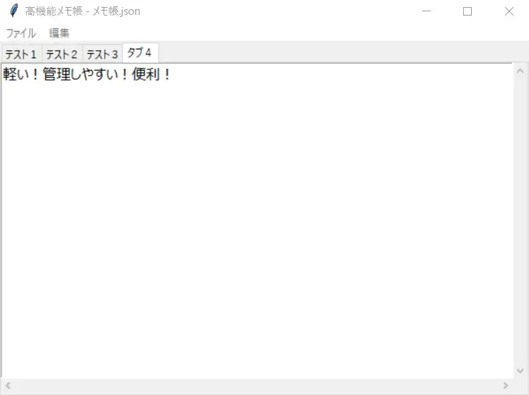 ご要望に合わせて、Pythonの標準ライブラリ(tkinter)のみを使用した、軽量でシンプルなタブ型メモ帳のコードを作成しました。